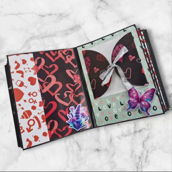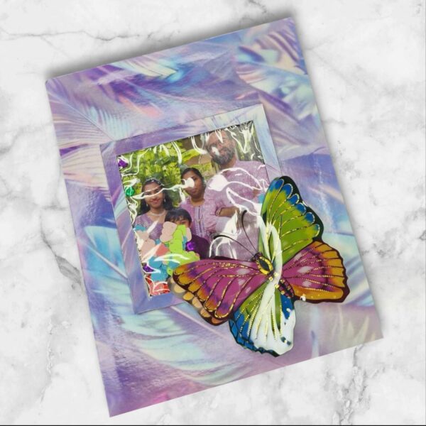 Capture memories with elegance and charm using this handcrafted butterfly-themed scrapbook, designed with a stunning holographic finish. Adorned with a vibrant 3D butterfly and filled with shimmering details, this scrapbook is perfect for preserving your most cherished moments in a creative and artistic way. Ideal for personal keepsakes, thoughtful gifts, or decorative coffee table displays.